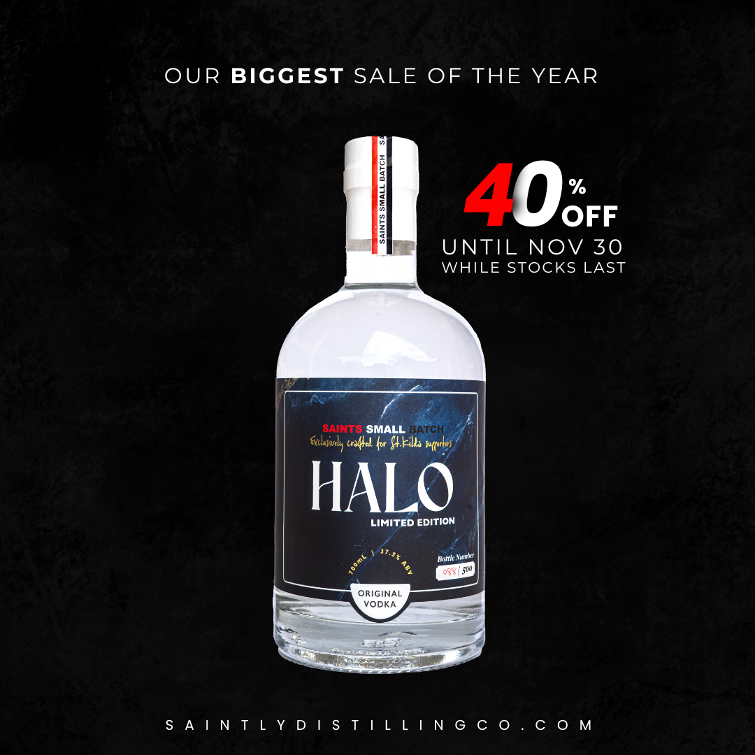 Get in touchI created Saints Small Batch to celebrate the spirit of St Kilda supporters — passionate, loyal, and full of heart. This small batch vodka is a tribute to the fans who stick with the Saints through every high and heartbreak.